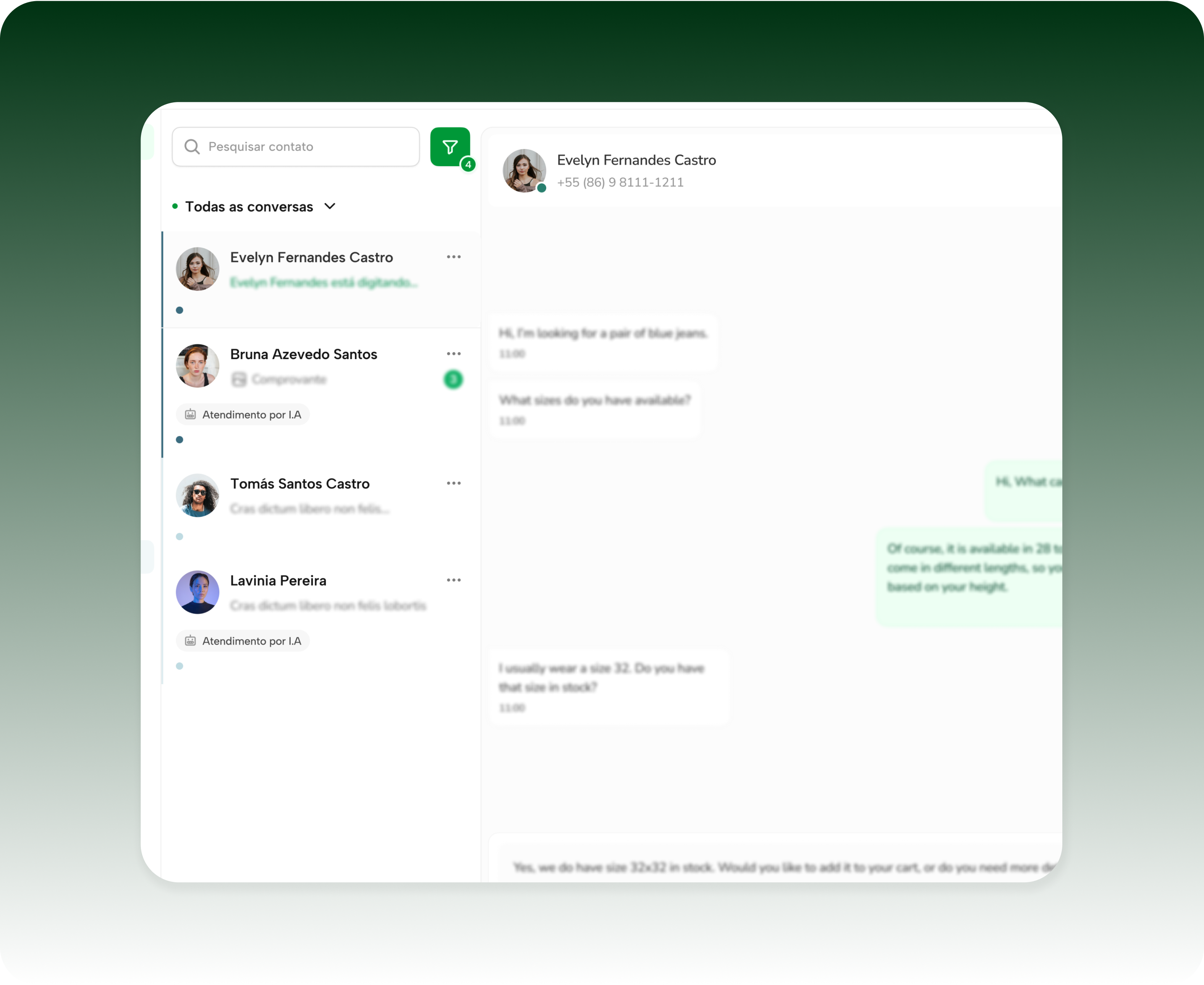 Chatbots inteligentes que respondem instantaneamente, dia e noite.